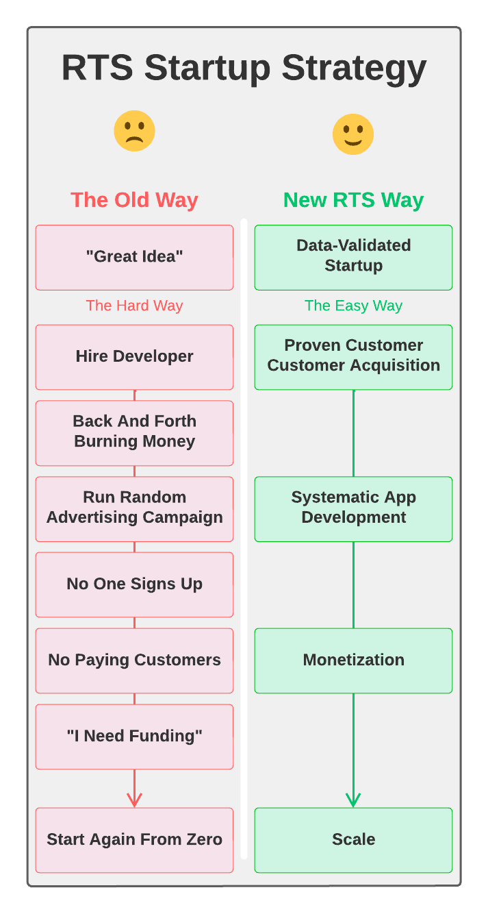 All while having certainty and predictability, so you cut losses dead on day 1 and know where to focus your attention ahead of time - this is the RTS Startup Blueprint.